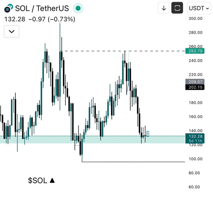 Solana重新进入被Cipher X称为市场重置点的广阔需求区域。这个介于120美元低端至130美元中端之间的区间,在过往调整阶段始终扮演着关键支撑角色。此次重新测试使价格回到买方曾多次吸收大量卖盘活动的熟悉领域。