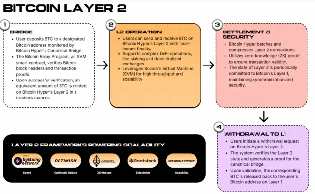该项目通过整合Solana虚拟机(SVM)提升吞吐量和智能合约执行速度,并采用规范桥接(Canonical Bridge)技术解决比特币基于费用的优先级机制问题。规范桥接能在比特币中继程序确认交易后,立即将用户比特币铸造至Hyper层网络。