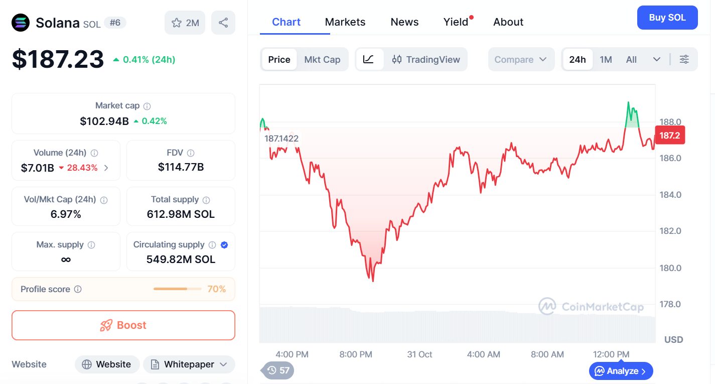 随着SOL在窄幅区间内震荡,关于Solana价格预测的讨论再度升温。截至发稿,SOL徘徊在180美元高位区间,市值逼近1000亿美元,稳居主流币种前列。