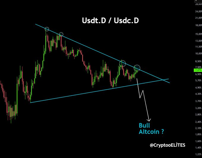 USDT.D/USDC.D下降三角形或引发资金流向山寨币