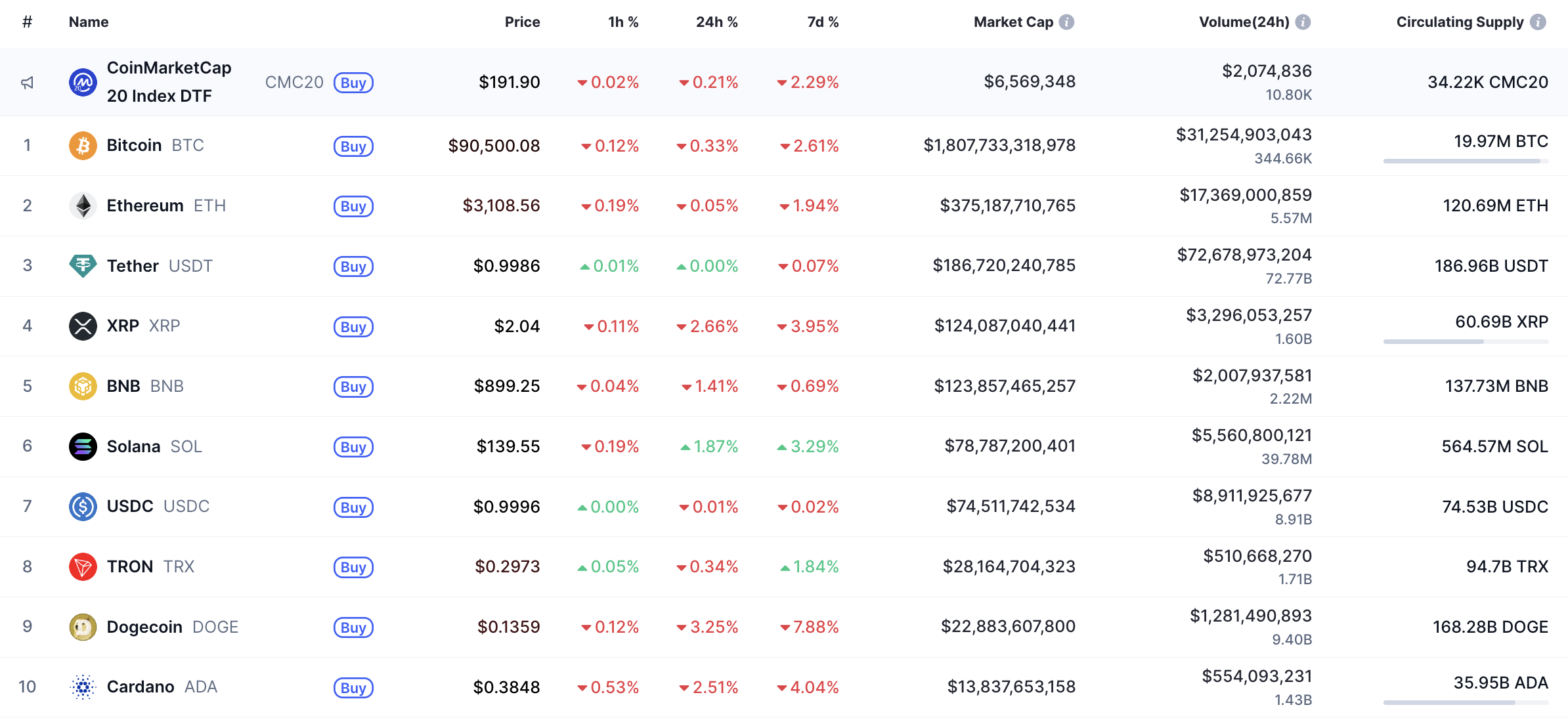 根据CoinMarketCap数据显示,周末的上涨过后市场行情已迅速转红。