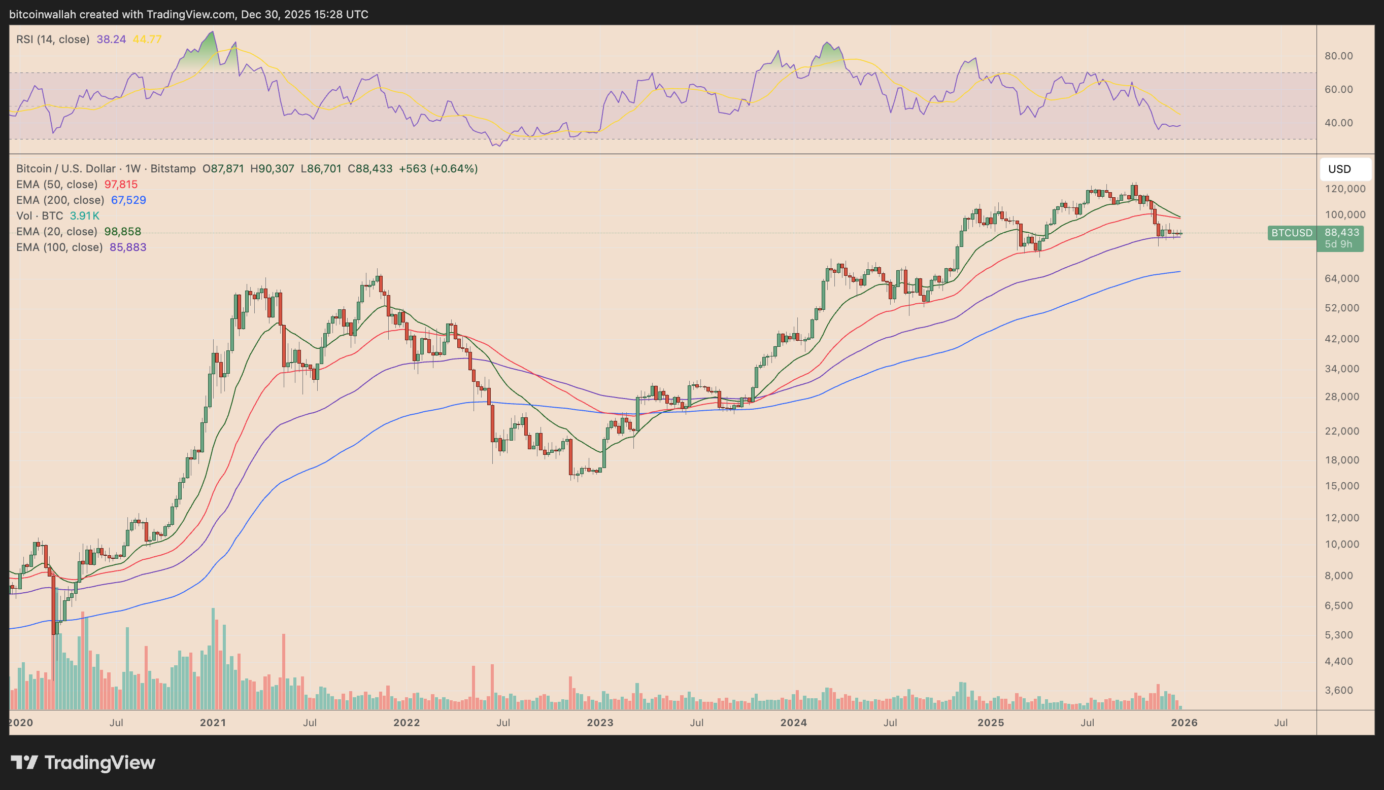 比特币的周线图揭示了为何这种沉闷的横盘区间对进入2026年至关重要。