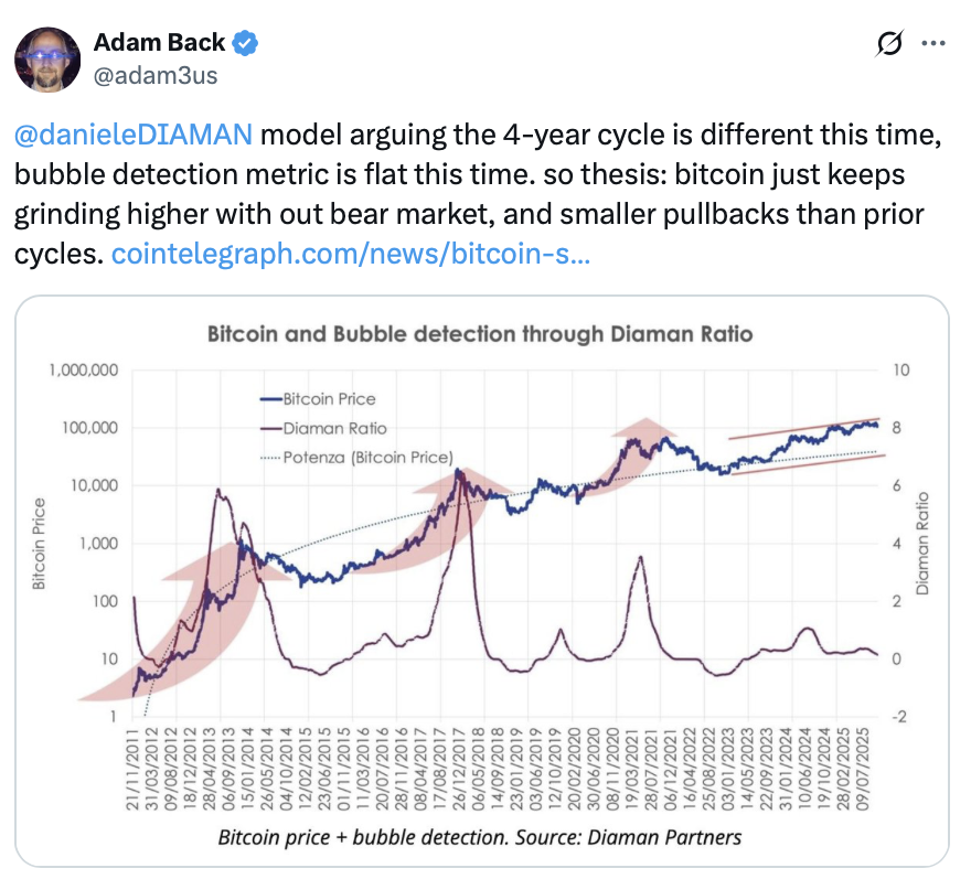 这场辩论使得全球比特币分析师阵营割裂。部分人士坚持四年周期依然有效;另一派则认为周期已死,比特币正走向全新的发展轨迹。