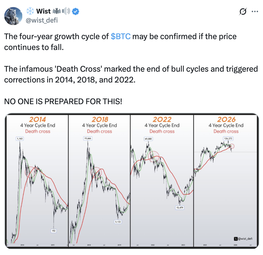 加密分析师Jesse Eckel更直言:"回望时我们会发现,2026年才是牛市起点。机械地数着四年周期进行投资,从来就不是真正的策略。"他特别强调——是五年周期。
