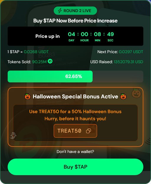 值得注意的是,该项目正在构建支持下一代区块链金融应用的基础层。巨鲸正加速买入预售中的$TAP,以折扣价提前布局这个实用型生态系统。