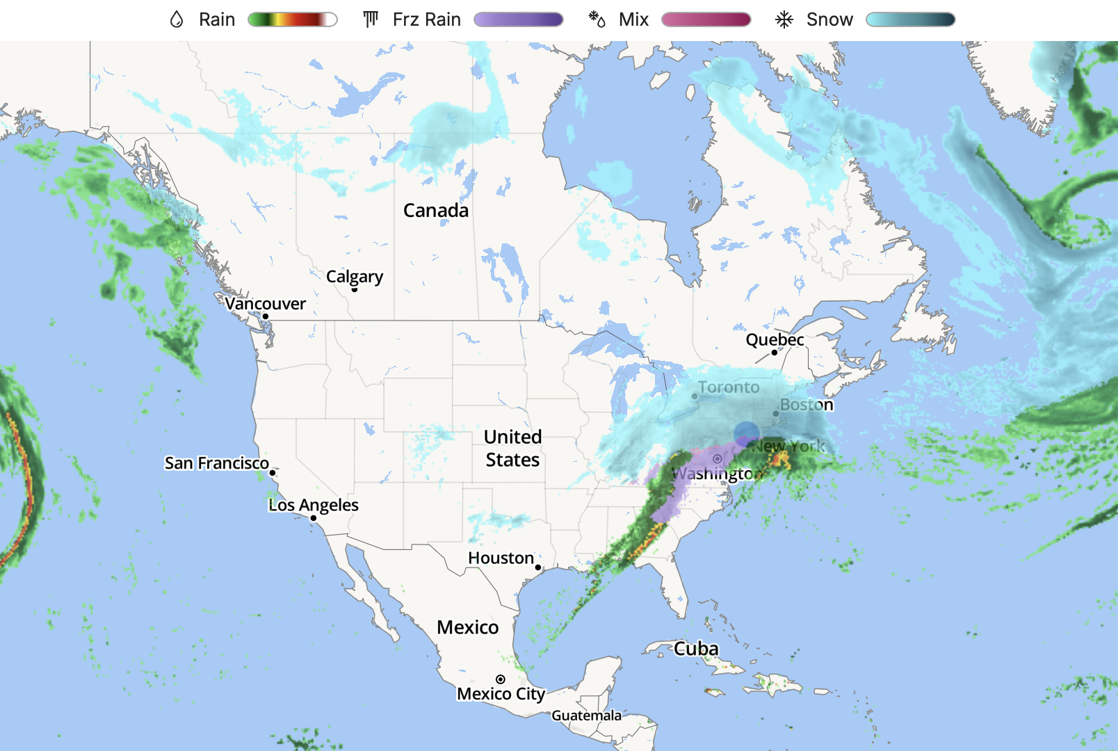 根据The Weather Channel的雷达预测,当前席卷美国的冬季风暴混合了雪、冰和冻雨,影响范围涵盖美国东南部、东北部及中西部部分地区。该气象机构报道称,风暴影响范围预计延伸约1800英里,大规模停电已影响超过100万居民。
