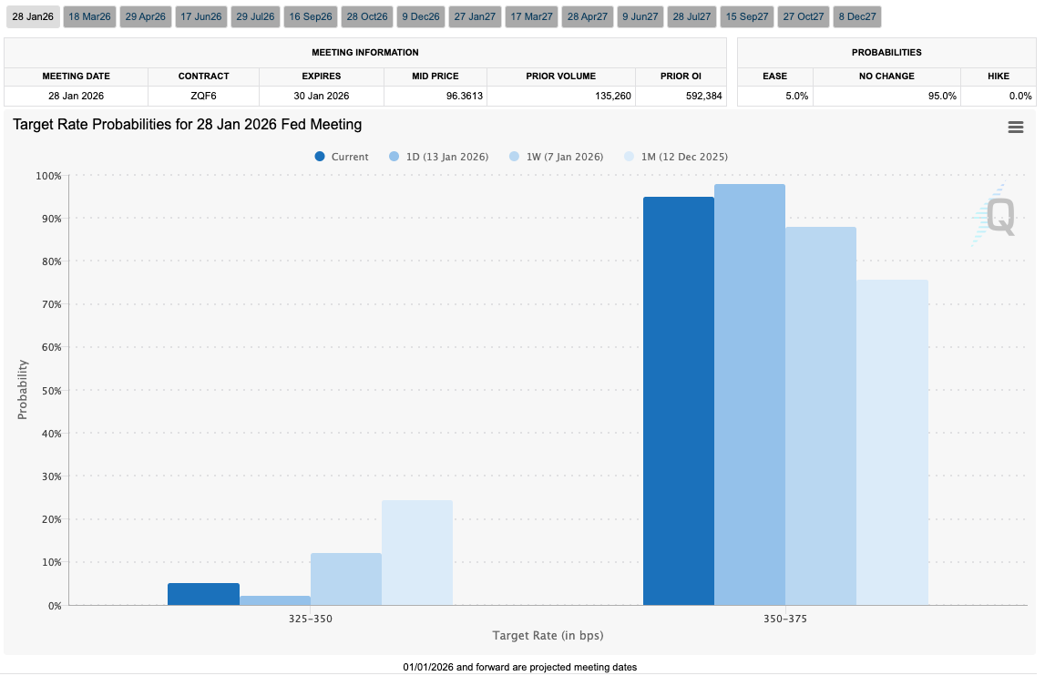 更高的通胀通常意味着美联储将采取更紧缩的经济政策,从而减少加密货币等风险资产的流动性。但比特币多头并未因此放缓反弹步伐——市场早已消化美联储1月会议暂停利率调整的预期。分析机构The Kobeissi Letter在社交媒体评论中写道:“PPI通胀已升至2025年7月以来最高水平,美联储将在两周内暂停降息。”
