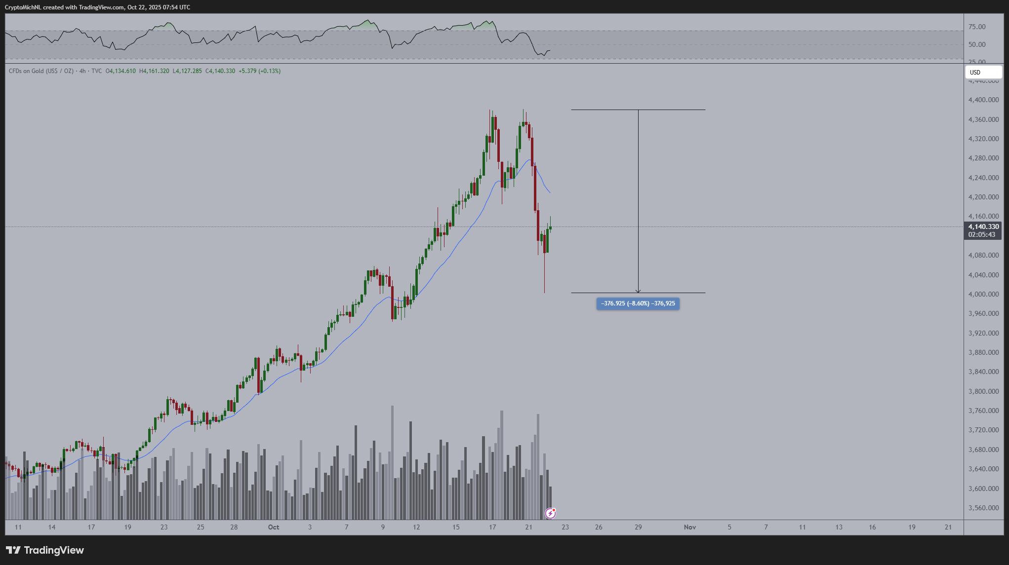Kobeissi Letter报告指出:"黄金两日累计跌幅达8%,市值蒸发超2.5万亿美元",创下2013年以来最大两日跌幅。分析师Michael van de Poppe认为,若比特币突破11.2万美元关键阻力,可能创下历史新高并带动山寨币上涨。他特别强调:"黄金波动性异常高企,这源于近期出现的极端价格偏离。"
