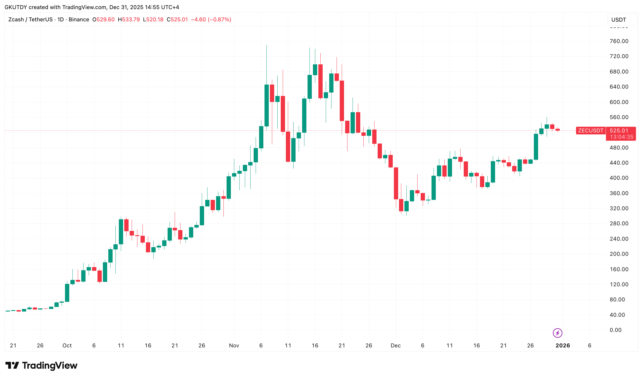 ZEC价格走势已提前反应,现报526.59美元,日线微跌0.57%。图表显示近期参考区间为520.12-492.27美元,上方560美元与680美元构成潜在突破目标。当前格局可解读为:ZEC在2025年末大幅拉升后维持高位整理,ETF申请消息为当前支撑位提供防守逻辑,直至市场兴趣消退或风险偏好逆转。