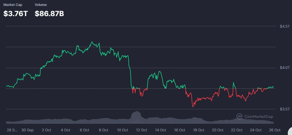 Polymarket预测数据显示:10月前降息概率达98%,12月降息概率更高达99%。这或许是周末加密市场回升的原因之一——部分投资者已开始提前布局。尽管从极端恐慌情绪中回升(恐惧贪婪指数从23升至37),但总市值从3.53万亿到3.76万亿美元的涨幅仍显谨慎,反映投资者风险偏好尚未完全恢复。