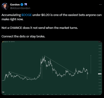 狗狗币价格目前处于关键分水岭:站稳0.20美元或吸引短线资金回流重振信心,而失守0.155美元则可能打开进一步下跌空间。