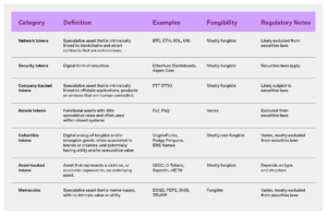 资产支撑代币可能完全或部分抵押,并可服务于不同目的:作为价值存储、对冲工具或链上金融基元。与从独特商品(如数字艺术、游戏内物品或活动门票)所有权获取价值的收藏型代币不同,资产支撑代币更类似金融工具,从其抵押品、价格锚定机制或赎回权中衍生价值。然而,资产支撑代币的监管待遇取决于其结构和使用场景。某些类型(如法币支撑稳定币)通常被排除在美国证券法之外。其他类型(如某些衍生代币)若代表投资合约或类期货工具,则可能受证券或大宗商品法规约束。