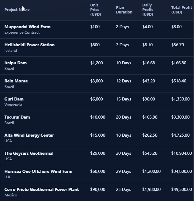 AMT DeFi的发展恰逢全球数字基础设施加速向可再生能源过渡的关键时期。自2016年起,平台持续投资于以下清洁能源驱动的云计算项目: