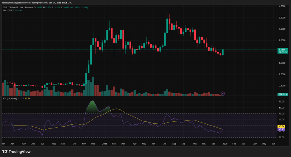 此次周线回升也是自2025年7月以来XRP价格的最大单周波动。