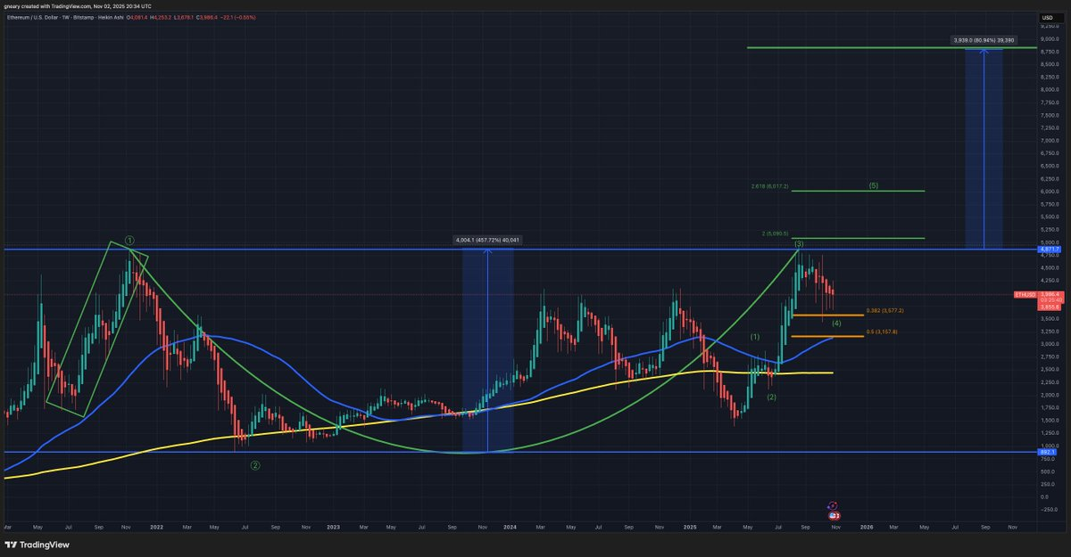 资深投资者The Long Investor表示,在其私人电报群分享的15,000余份图表分析中,可以"瞬间判断图表是否值得担忧"。他认为以太坊当前走势并非危险信号,并预测未来数月将反弹至6,000美元。