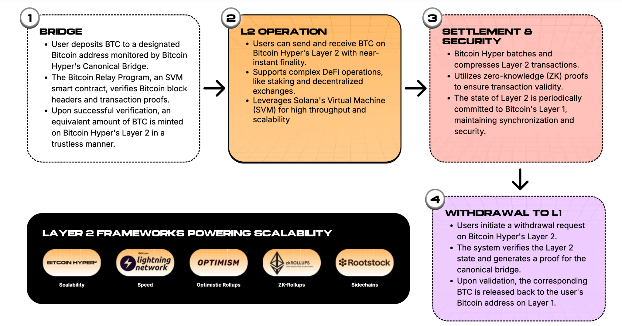 Bitcoin Hyper旨在构建基于Solana虚拟机(SVM)的比特币二层网络,以解决比特币网络的速度和功能限制,将成为市场上最快的比特币L2解决方案。目前最快的比特币L2Rootstock仅能处理300TPS,而该项目将支持每秒数千笔交易,为比特币DeFi、RWA、游戏、模因币和稳定币运营开辟新可能。