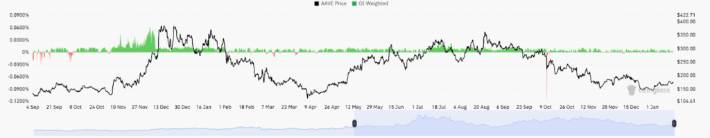 在经历长期的调整阶段后,AAVE显示出明确的结构性转变。日线突破与趋于稳定的衍生品数据相一致,表明在数月可控波动后参与者重新布局,市场状况正在改善。