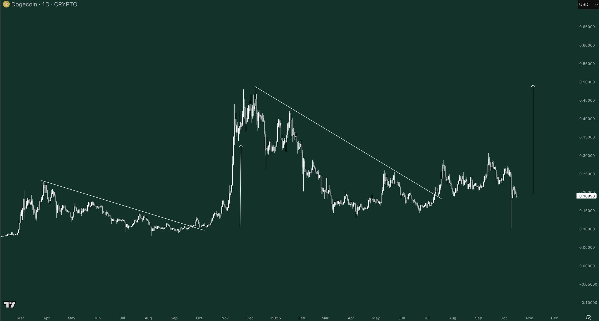 狗狗币现报0.187美元,在月跌32%后维持买卖平衡。分析师注意到鲸鱼正趁散户活动低迷期持续买入——这种模式往往出现在大涨前。0.20美元仍是关键阻力位,有效突破后或打开通往0.27-0.30美元的通道。当散户恐惧而鲸鱼抄底时,狗狗币持续位列ETF资金浪潮前最佳投资选项。历史表明,市场情绪回暖后DOGE往往率先展现波动弹性。
