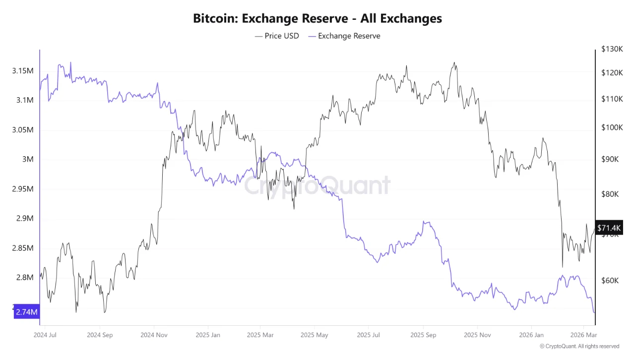 比特币重返7.2万美元上方 交易所储备降至六年最低