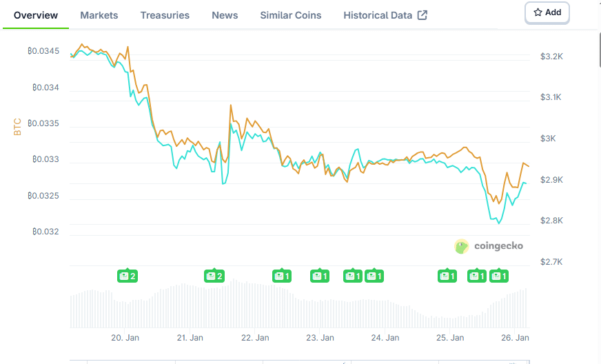 关键时机出现在1月25日——当以太坊对比特币汇率触及0.0322 BTC附近的局部低点。这一波动为WLFI提供了以更有利价格建仓以太坊的理想契机。