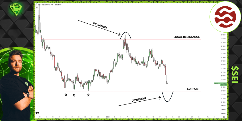 目前,SEI价格已回升至支撑位上方,焦点转向买方是否能够真正守住这一区域,而非让价格再次滑落其下。