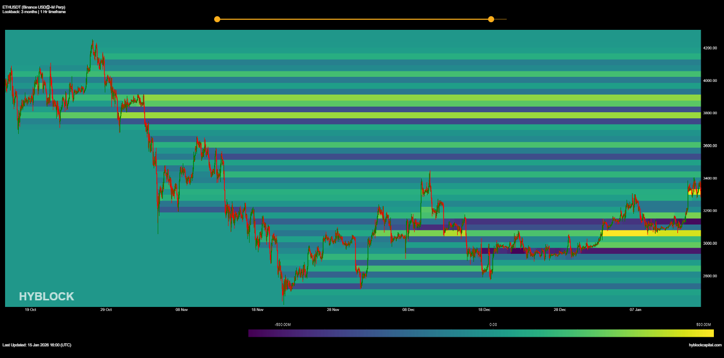 Hyblock的数据支持这一观点,数据显示在3040美元至3100美元区间存在超过5亿美元的净多头头寸集中。如此密集的持仓布局增加了价格短期扫向该区域的可能性,或为后续更强劲的延续性上涨奠定基础。