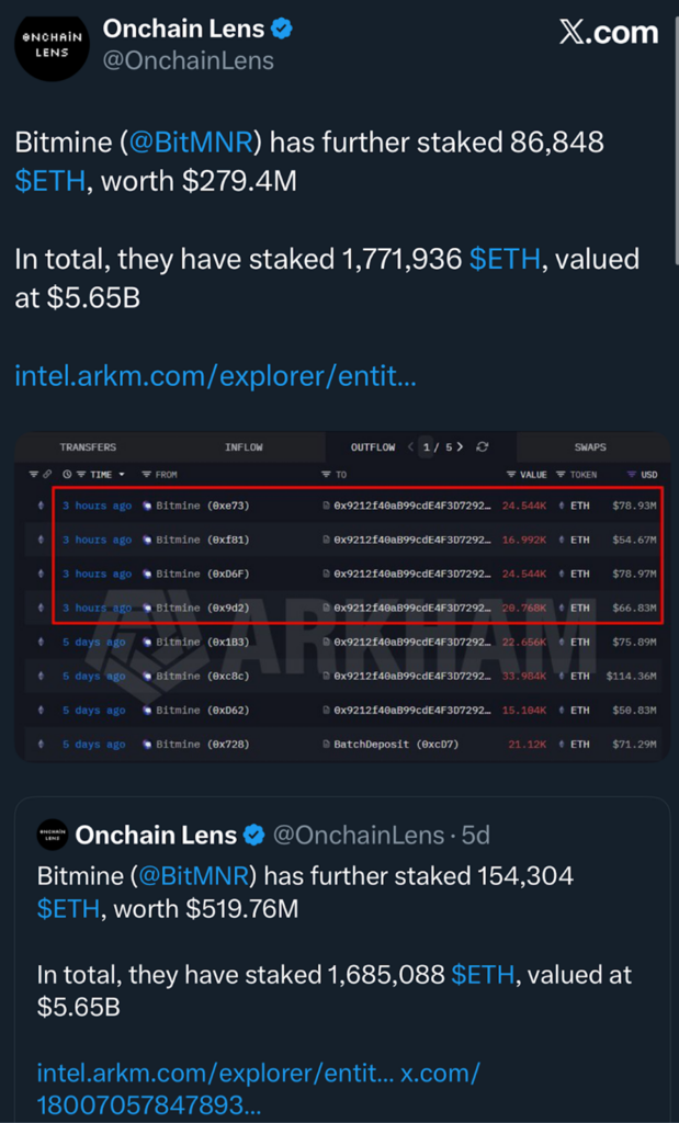 从基本面上看,BMNR仍拥有坚实的长期叙事。公司已将重心转向在公开市场建立最大的以太坊国库持仓之一。它持有数百万枚ETH,并持续将大部分进行质押。