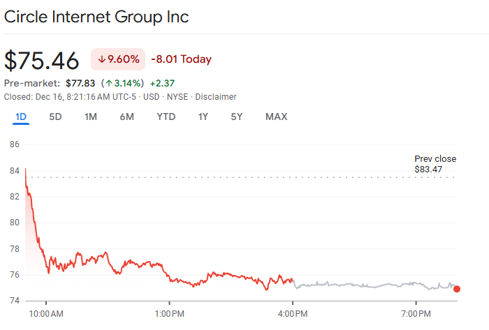 Circle股价对此作出即时反应。12月16日开盘后CRCL股价上涨约3%,反映出投资者对USDC发展计划的信心。