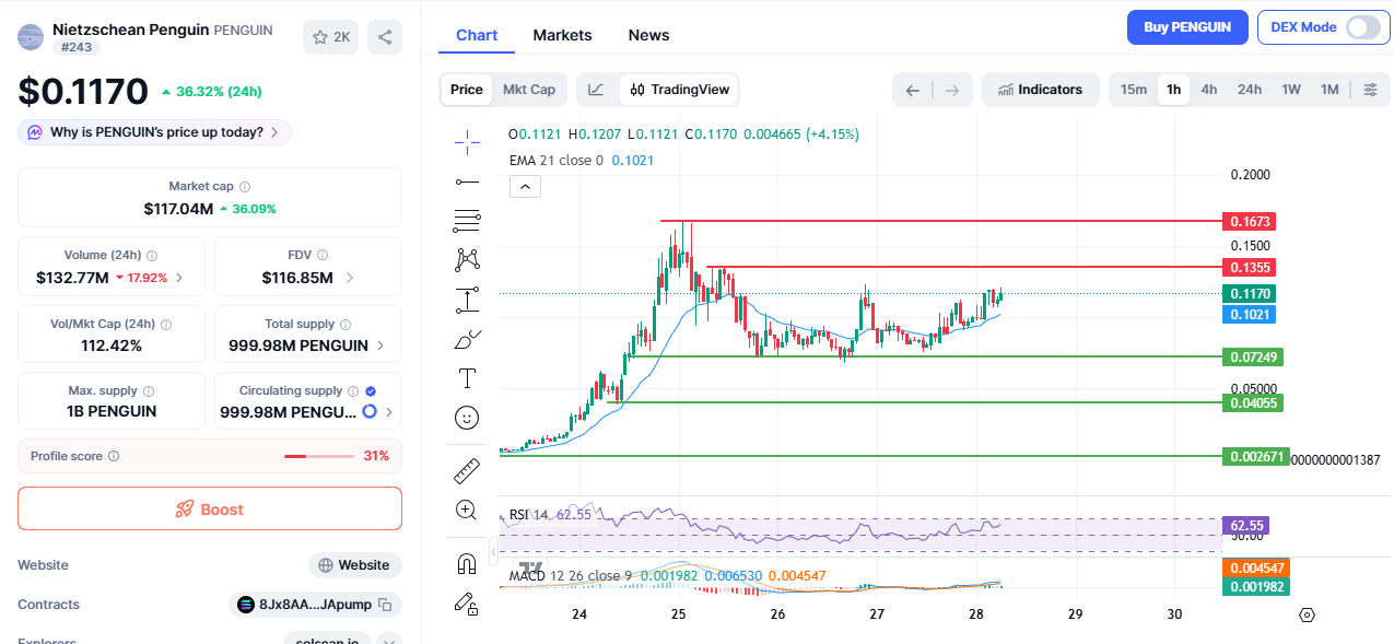就尼采企鹅币2026年价格预测而言,专家观点认为本轮上涨主要由病毒式关注度及投机资金流驱动,而非长期基本面支撑。只要价格维持在0.07249美元基底区域上方,短期上探0.1355美元与0.1673美元的空间仍存。若跌破该支撑位,则意味上涨动能开始衰退。