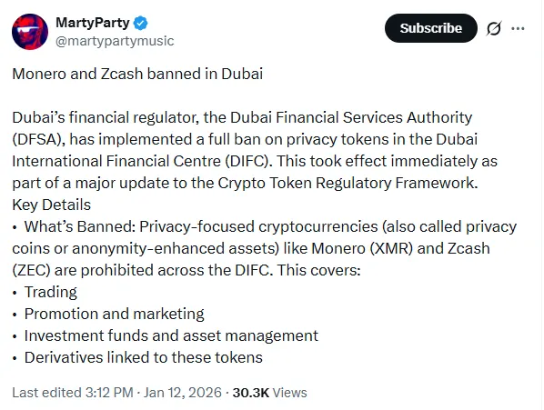 门罗币与阿联酋隐私币禁令