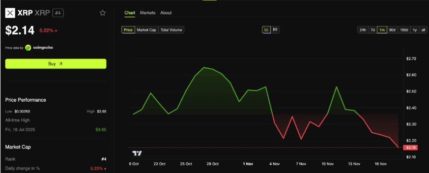 XRP价格在现货ETF推出后下跌11%:鲸抛售与市场疲软成主因