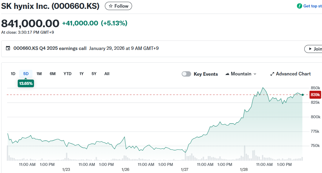 第四季度营业利润达到19.2万亿韩元,较去年增长一倍以上,超出预期。12月季度营收同比增长66%,达到32.8万亿韩元。2025年全年利润超过47.2万亿韩元,是2024年数字的两倍多。公司获得了为微软Maia 200 AI芯片独家供应HBM3E的协议。业绩公布后股价上涨6%,自2025年9月以来已上涨两倍。