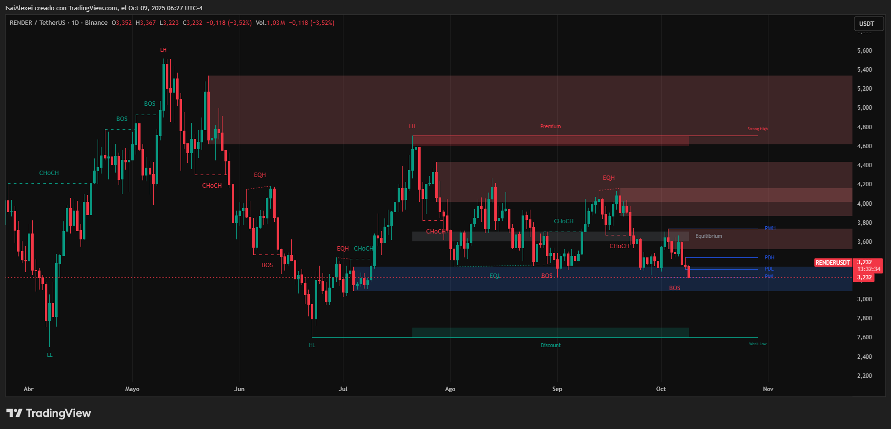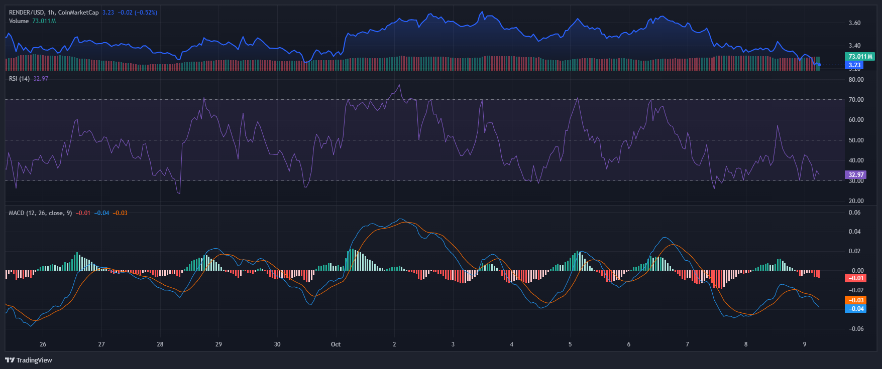 Render(RENDER)当前交易价格为3.24美元,24小时跌幅3.79%,周线下跌10.19%,显示在强劲的三季度表现后出现短期疲软。