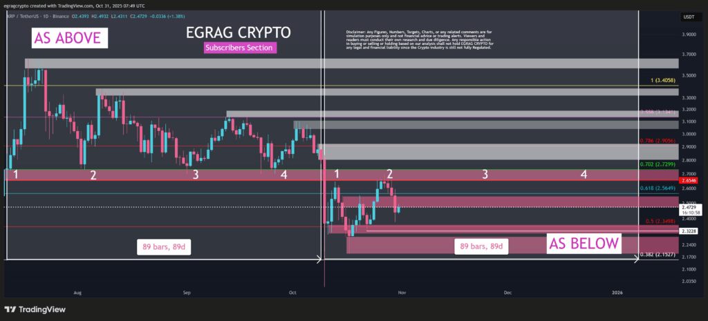 尽管ETF利好带来希望,分析师CRYPTOWZRD最新警告称,若2.46美元关键支撑位失守,XRP可能快速跌向2.2美元、2美元乃至1.5美元低位。