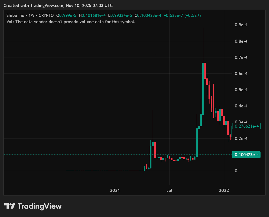 可以将其与Shiba Inu(SHIB)早期爆发阶段进行恰当类比。2020年SHIB的交易价格约为0.000000000056美元,而在2021年10月达到0.00008841美元的历史高点。这一走势历时约13个月,实现了超过157,000,000%的惊人回报。尽管SHIB的暴涨由模因文化驱动,但它展示了社区参与、病毒式传播和清晰的代币分配机制如何能在短期内推动资产达到非凡高度。