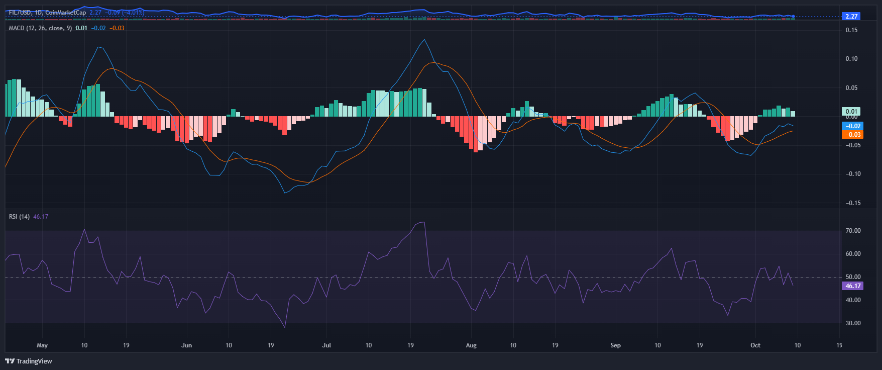 Filecoin(FIL)现报2.27美元,24小时下跌1.17%,周跌幅2.41%,但年内仍保持37.6%的涨幅。