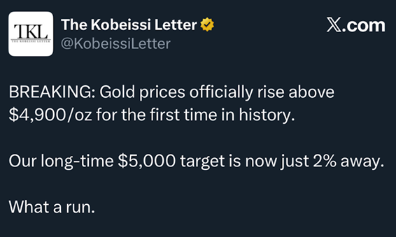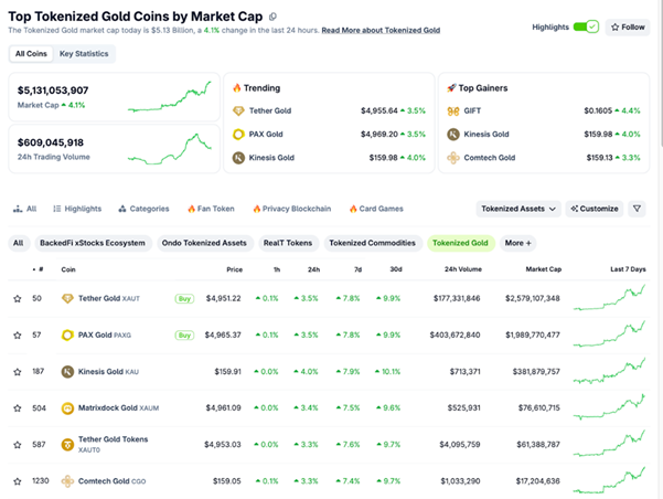 实物黄金交易价格已接近每盎司4,900美元,处于历史最高水平。当黄金如此波动时,黄金锚定代币几乎亦步亦趋。