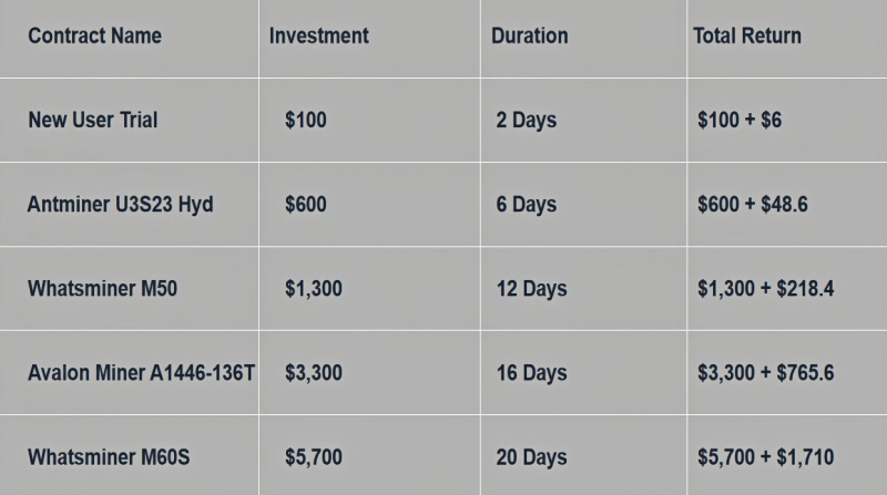 Anchor Mining提供多样化灵活投资方案:从短期体验到高回报周期,适配不同预算与风险偏好。