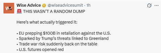 今日加密市场抛售并非源于比特币或以太坊内生动力衰退,而是美欧贸易紧张升级与杠杆资金出清共同驱动的宏观震荡。只要全球不确定性占据头条,市场波动就将持续高企——但加密货币核心基本面依然稳固。若地缘政治压力缓解,此次下跌或将成为又一次经典恐慌性回调,而非深度趋势逆转的开端。