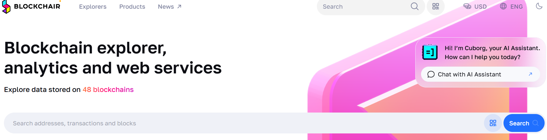 Blockchair是一个支持包括以太坊在内的多个网络的多功能区块链浏览器。这个以太坊区块浏览器以其速度和强大的搜索能力而闻名,已成为那些不仅仅满足于基本交易追踪的用户的最爱。其多链支持也使其成为跨不同区块链比较活动的首选工具。
