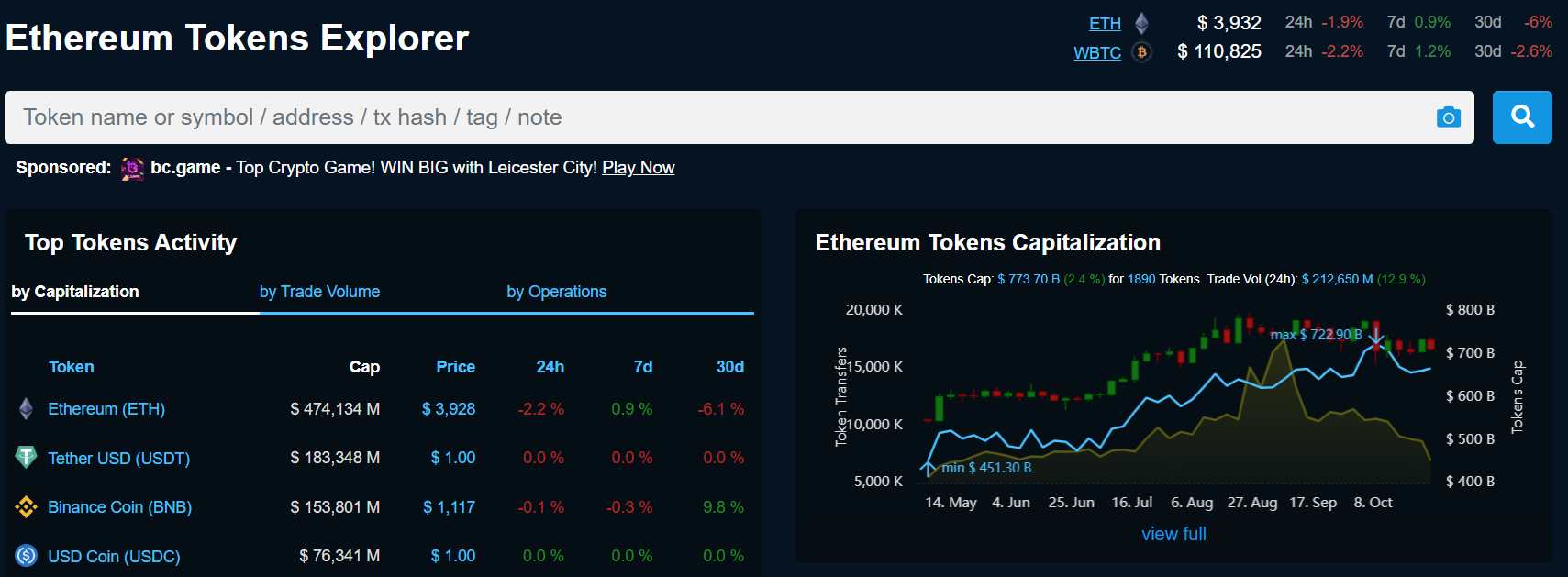 Ethplorer是一个用户友好的以太坊区块浏览器,非常侧重于代币追踪。这个以太坊区块浏览器在零售用户和DeFi参与者中很受欢迎,对于那些希望清晰了解ERC-20和ERC-721代币活动而又不想陷入过于技术性细节的人来说尤其有用。