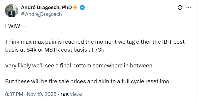Bitwise分析师安德烈·德拉戈什强调两个关键价格区域后,比特币最大痛点成为市场焦点。他指出当价格触及84,000美元的IBIT成本基础或73,000美元的MSTR成本基础时,市场将承受最大压力。此番言论发表之际,比特币已跌破85,000美元关口,今日早间交易价格接近84,863美元。在市场寻找下一步走向信号时,该分析为投资者提供了重要参考背景。