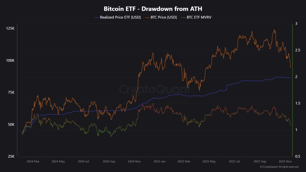 Maartunn数据显示,比特币ETF的平均实现价格目前为86,680美元,这是多数ETF头寸的建仓价位。持续高于ETF实现价格的溢价可能表明大型投资者兴趣不减。