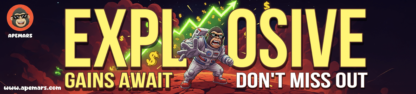 列表中的每个项目都带来了独特之处:Pudgy Penguins、FLOKI、Dogwifhat、SPX6900、Fartcoin、Baby Doge Coin以及APEMARS($APRZ)。然而,在权衡布局、时机和上行潜力时,APEMARS脱颖而出,成为最佳模因币投资选择。
