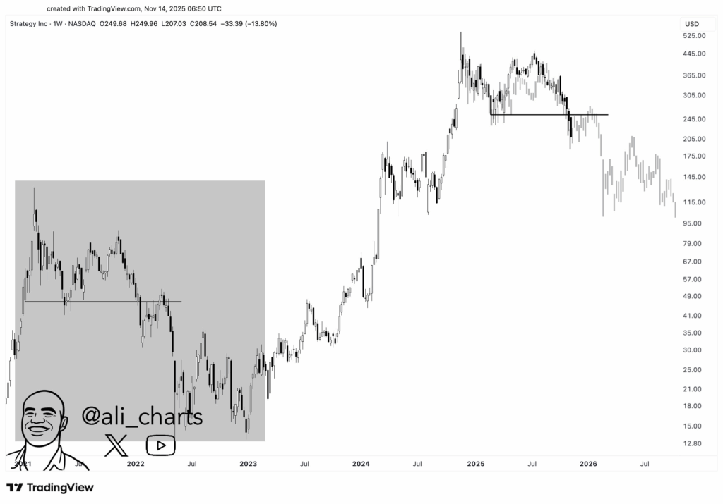 MSTR股票价格分析 | 来源:阿里·马丁内斯,X平台