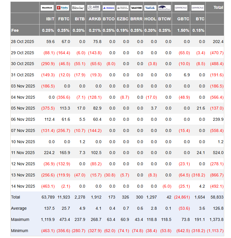 周五比特币ETF单日净流出达4.92亿美元,其中贝莱德几乎贡献全部赎回量。11月12日至14日三天内更录得近18亿美元净流出。