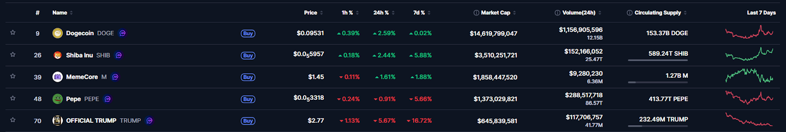 市值前五迷因币