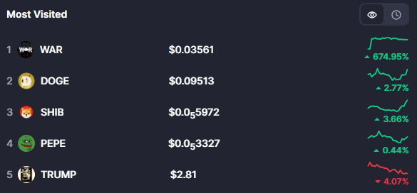 同日,战争主题迷因币WAR通过Migrate.fun完成从Bonk.fun至Pump.fun的迁移。CoinMarketCap数据显示,其市值目前已攀升至约3500万美元,较迁移前增长约50%。