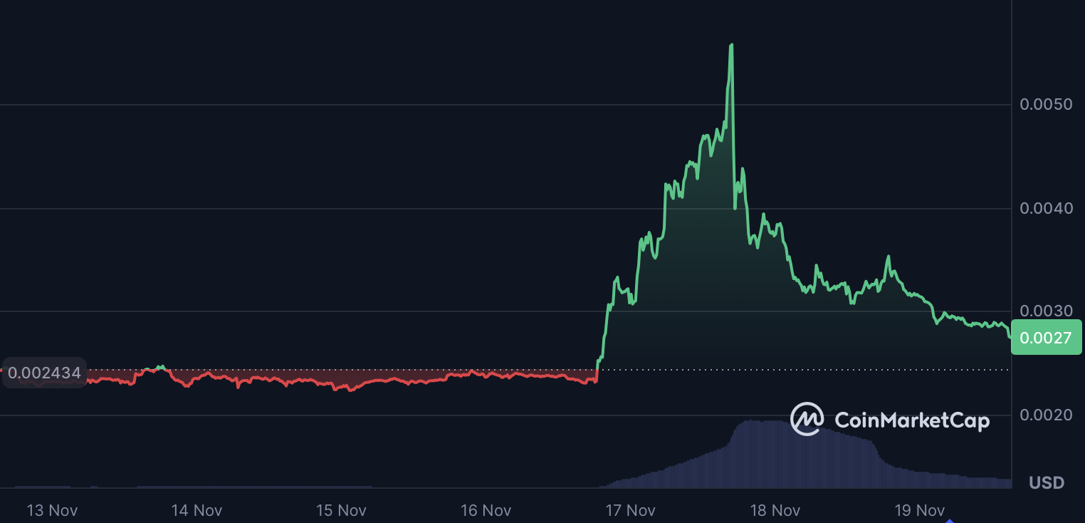 随着币安上线现货和合约交易,以及通过"全球高校秋季训练营"开展学术推广,该项目交易量激增279%至2967万美元,创下本季度最高单日成交记录之一。