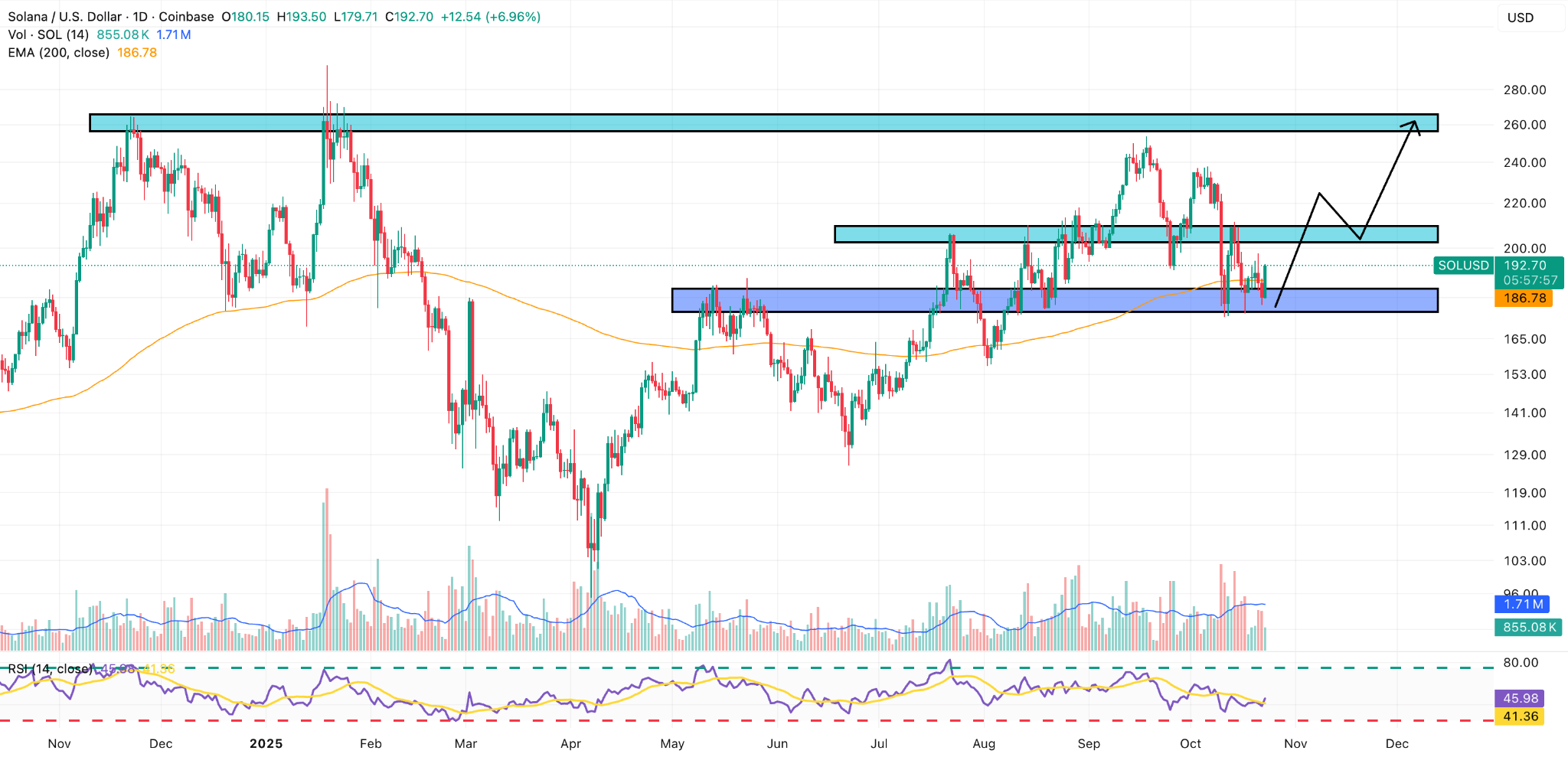 截至10月23日,SOL交易于190美元附近,较2025年高点回调约30%后企稳。该网络最新推出的区块组装市场旨在优化交易排序并降低最大可提取价值,已获得开发者社区积极反响。